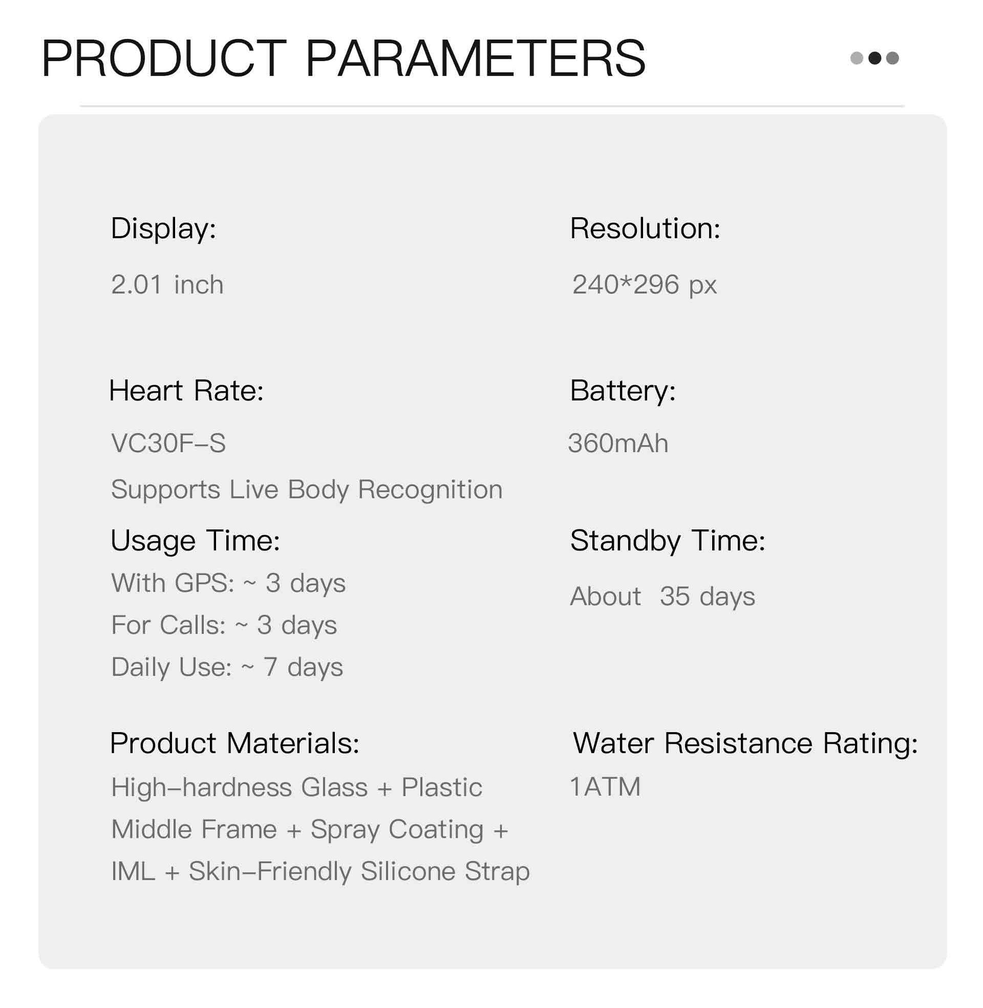 This smartwatch offers a 2.01-inch full-touch screen with clear visuals and durable glass. It has 128MB storage and a 360mAh rechargeable battery that lasts up to 35 days on standby. Features include heart rate, blood oxygen, sleep, and stress monitoring, with optional blood pressure tracking. Users can customize watch faces and switch languages easily. The main screen provides quick access to settings, notifications, health data, and weather, with flexible list or grid views. GPS and compass support make it suitable for outdoor activities. Compatible with iOS and Android devices.
